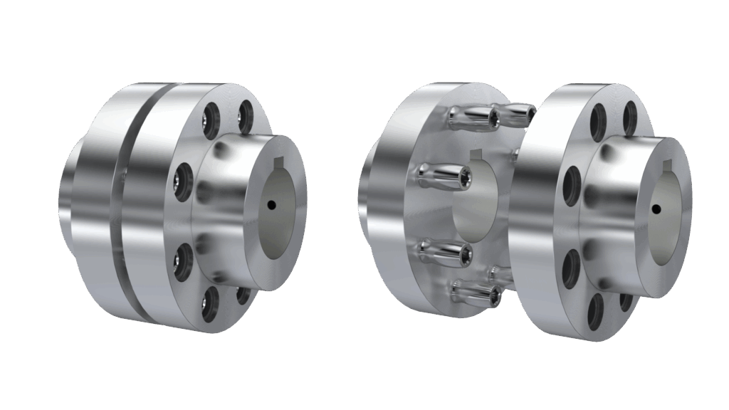 Request a QuoteThe Single Engagement Design is comprised of two hubs—one containing pins and one containing bushings. This arrangement can only accommodate Angular and Axial Misalignment.