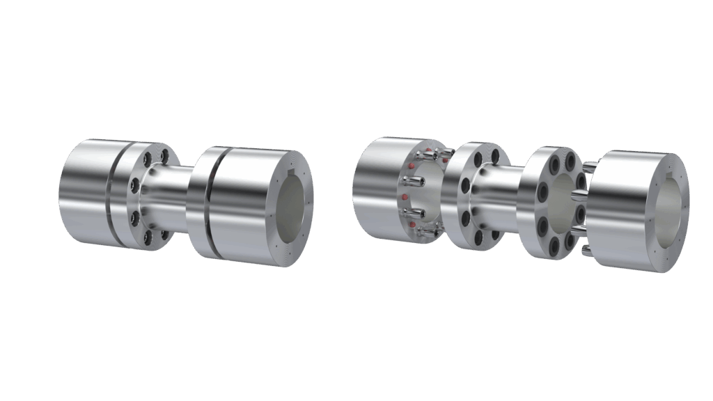 Request a QuoteThe Spacer Model “B” consists of two Hubs with Pins that engage with a Cylindrical Spacer with Bushings on each side. This configuration allows for smaller diameter hubs reducing the weight of the coupling assembly and can accommodate Parallel, Axial and Angular Misalignment.